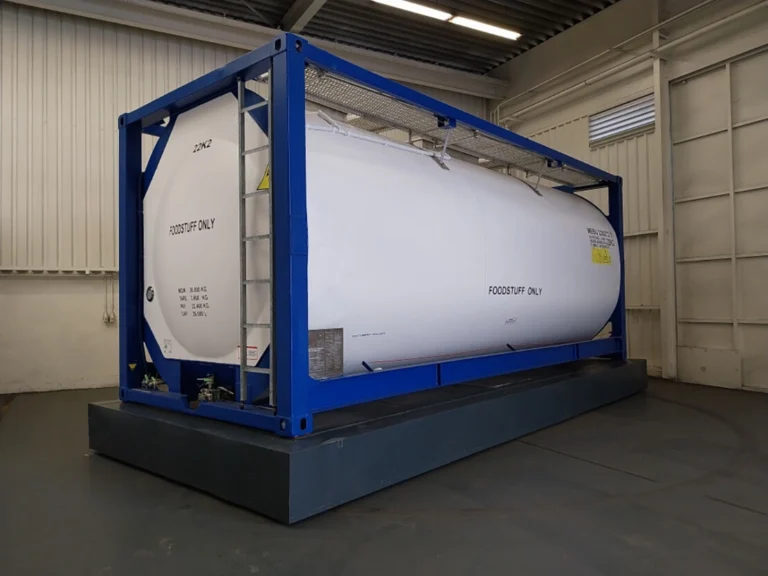 Container maritime d’occasion structure en acier Corten et cuve en acier inoxydable.