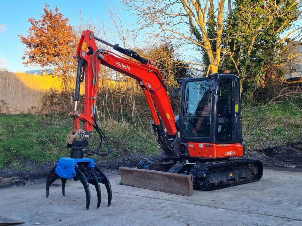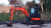 Kubota nouvelle forme U50-5 très propre, agréable à conduire et machine étanche. Il s'agit de la haute spécification avec deux conduites hydrauliques + climatisation.