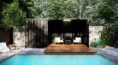 Pool House construite à partir d’un container de 20 pieds dernier voyage (peut présenter des bosses et des enfoncements).